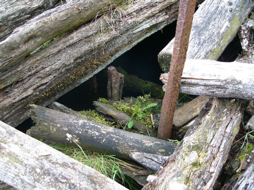 Among the timber covering over this open shaft can be seen the keps and operating lever.
