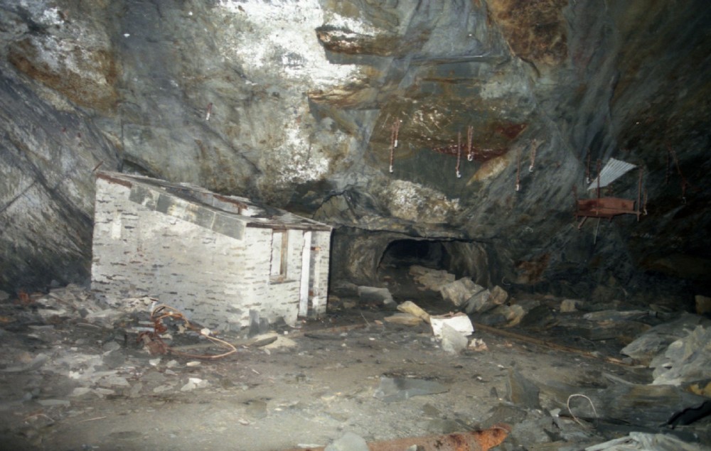 Looking North towards the balance level, showing the old hut. Just visible at the bottom of the picture is a pipe...