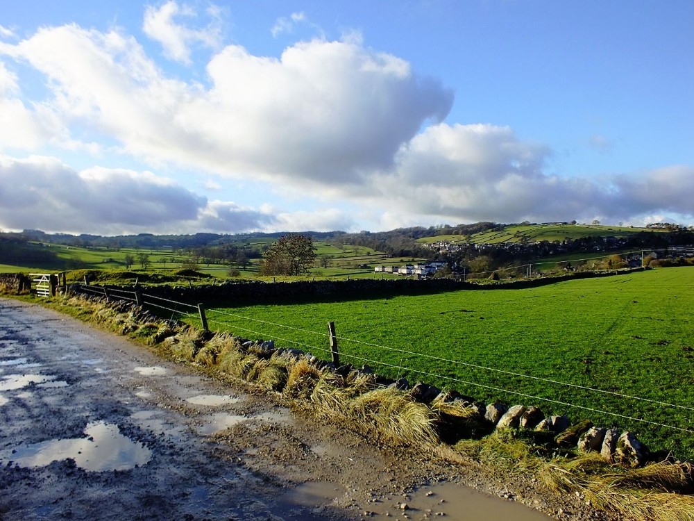 View looking west with the shaft behind the wall, in the distance is Youlgreave and Bradford is on the right.