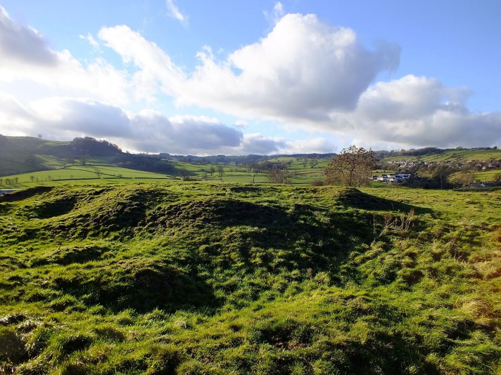 The shaft cap is just visible towards the right of the mound and there is a large flat area on the left side of the mound - possible gin or engine site?