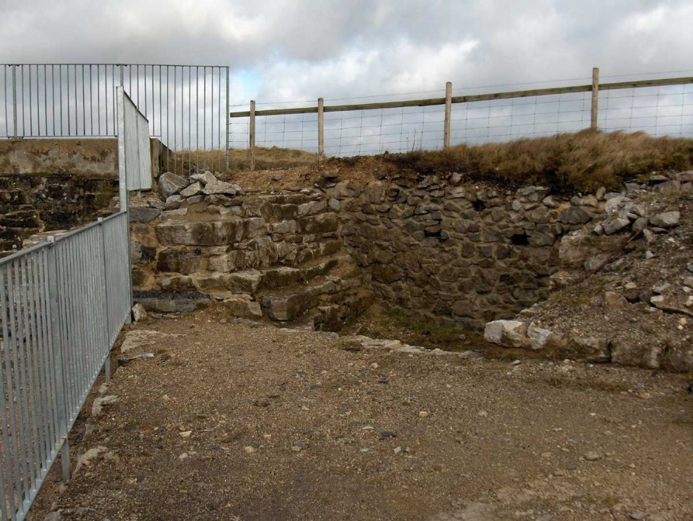 The balance bob would have been on this platform, swinging into the pit. Three large gritstone blocks were used as a counterbalance weight.