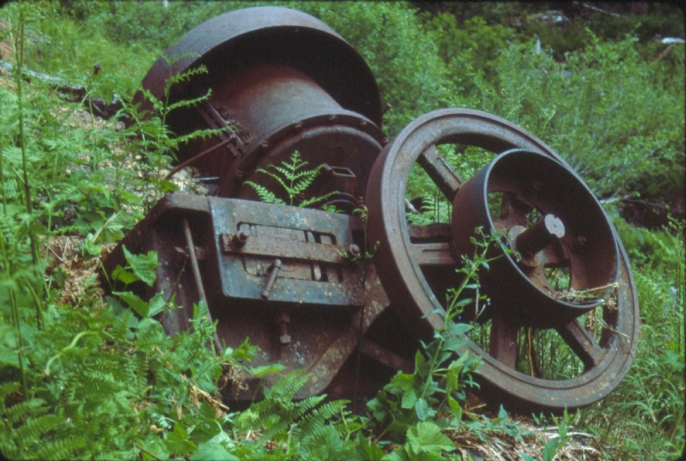 Jaw crusher, ball mill behind. Photo taken 1982.