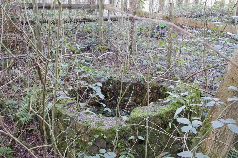Remains of the 'Beehive' shaft cap over the first ventilation shaft for Exley's Gitchfield Clay pit. Shaft 25m deep to ocherous mud and water (now used as a water supply for the nearby water treatment works)