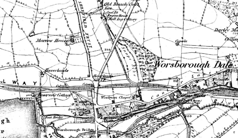 OS map extract from 1850 showing two sites labelled Bell Ing Colliery.