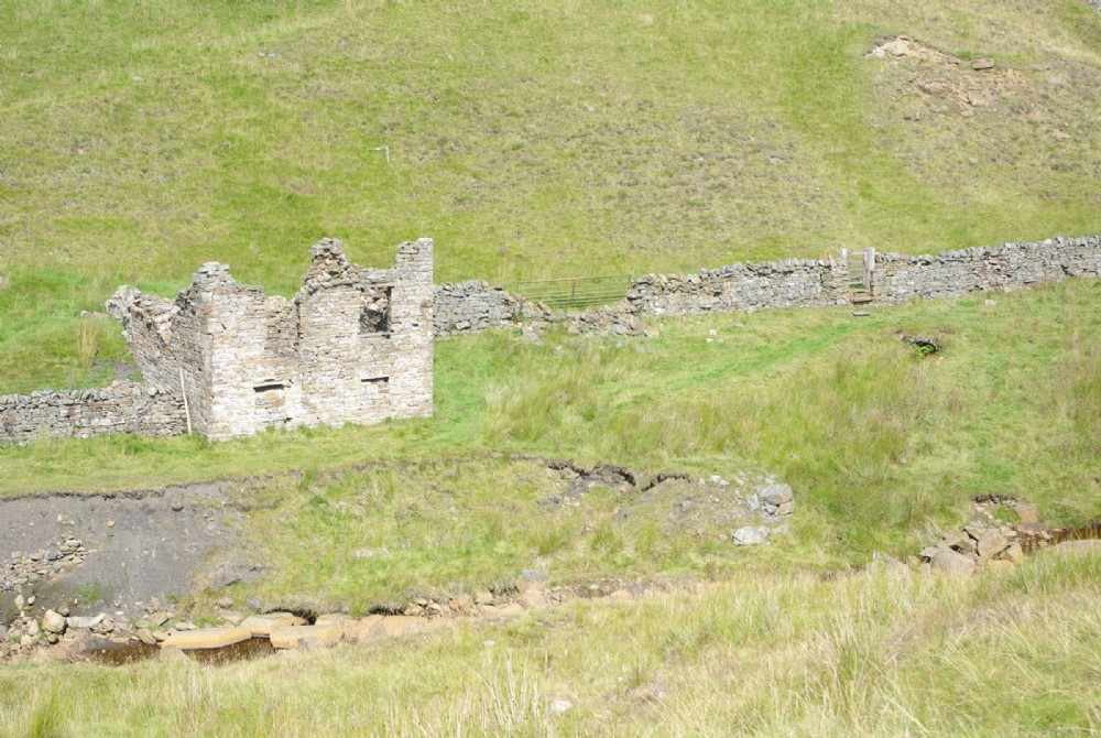 View looking north, August 2011. Shows site before repair work started on mine shop