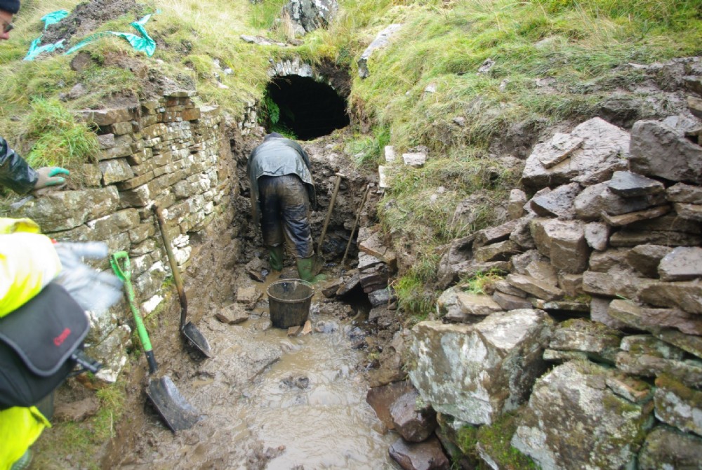 Entrance on 6 October 2011 after first day of excavation. Richard Heaton finishing off after third hail storm - otherwise a great day out.