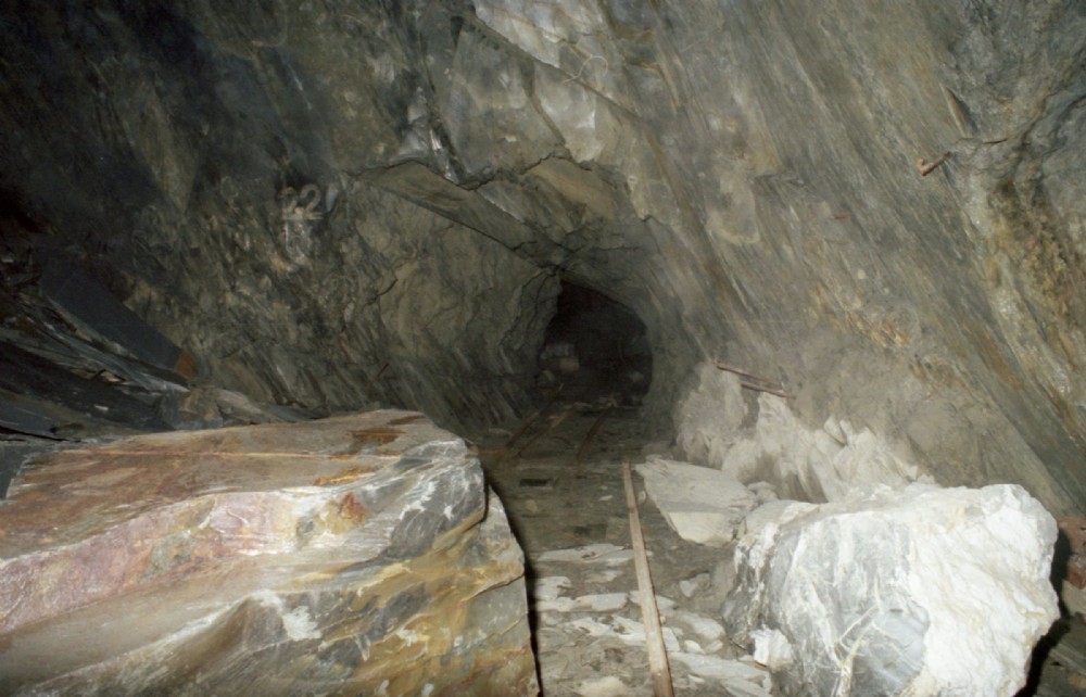Curiously, beyond this large block in the middle of the chamber in 21 N.O.V. we found the tramway track.