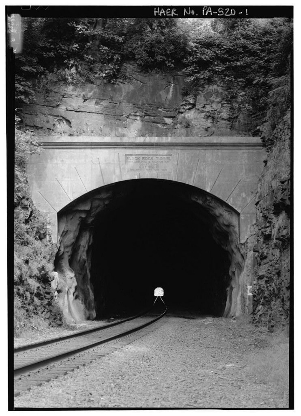 Philadelphia & Reading Railroad, Black Rock Tunnel, Beneath Black Rock Hill, southwest of Black Rock D, Phoenixville vicinity, Chester County, PA.