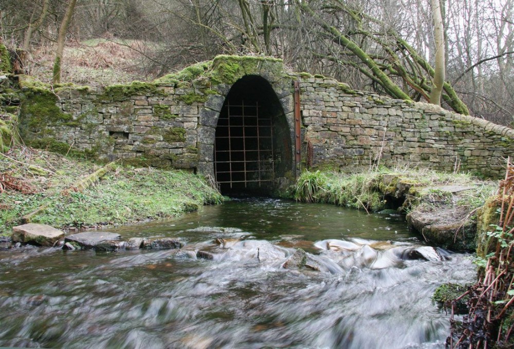 A strong flow of water from the level mouth.