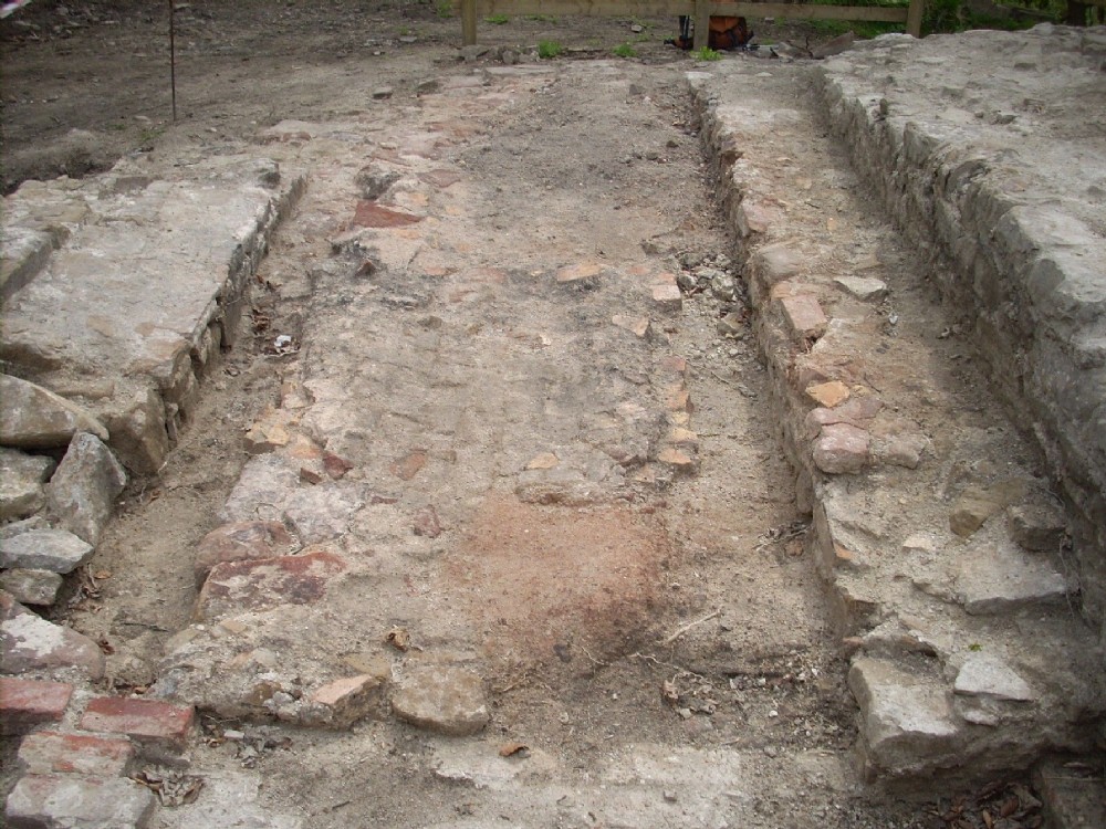The boiler was sat on a base of firebrick, some of which remains and still shows the curvature of the boiler. Thank to AR for description. Photo taken of excavations, photo taken 24 April 2009