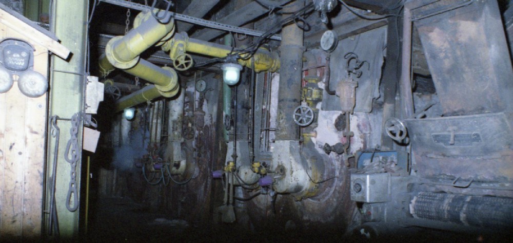 Methane fired boilers using the pit's own methane from the methane drainage system. Chain grate coal fired boiler on right.