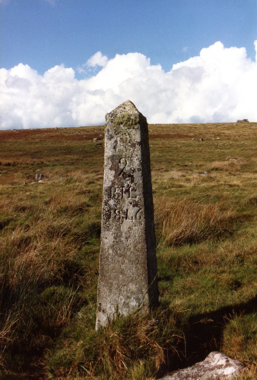 Granite boundary marker, Kilmar Tor. Dated 1846.