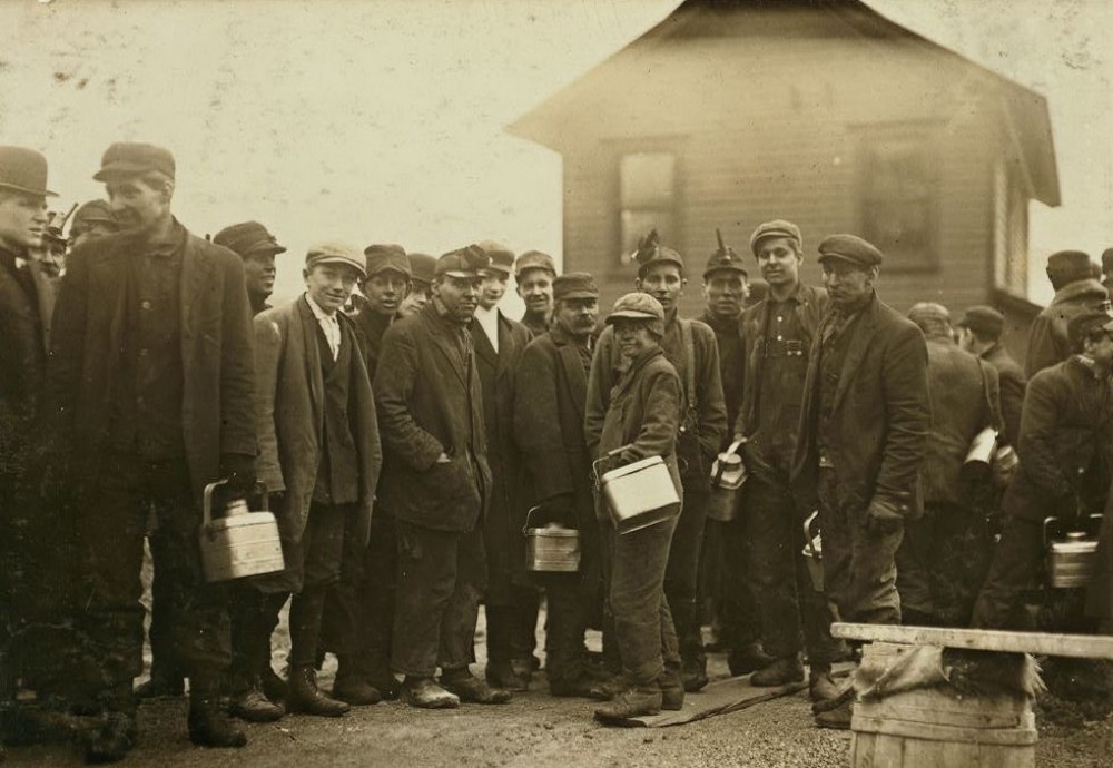 In centre is one of the young boys working underground in the Bliss Shaft of the D.L. & W.
