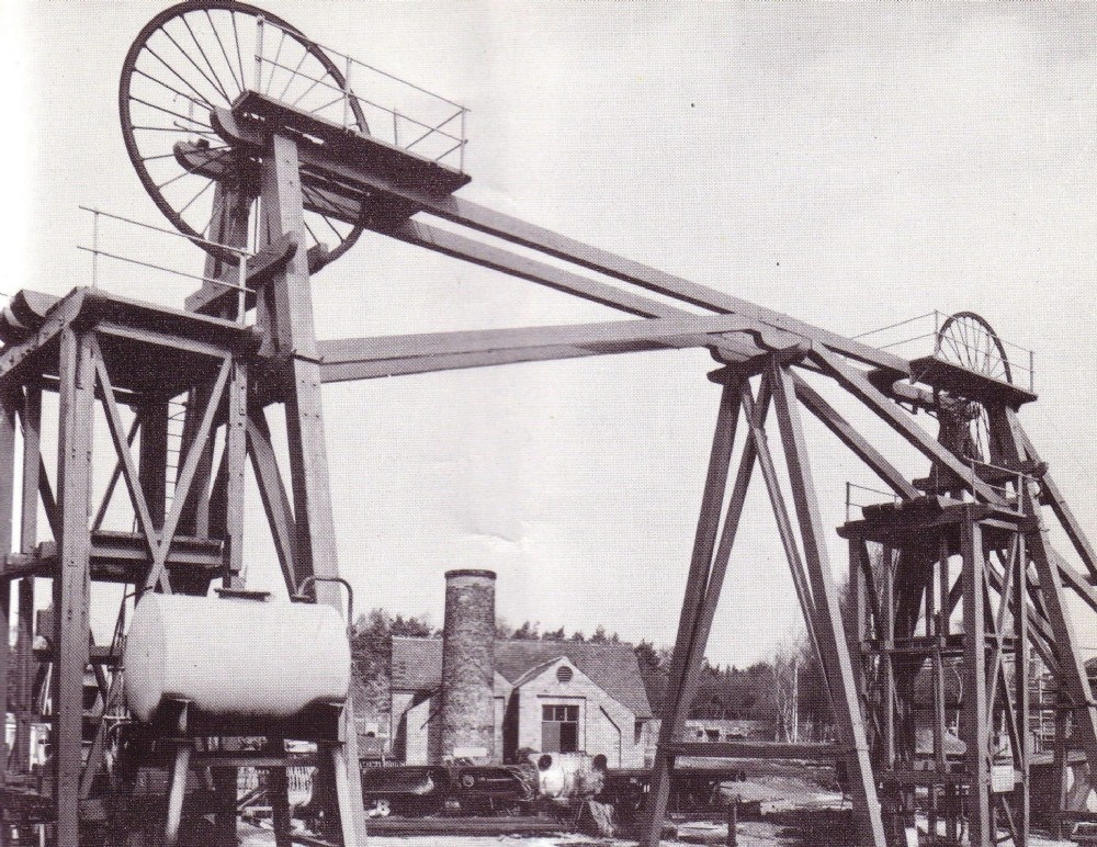 Brinsley Head gear at Lound Hall, in the back ground is a Cupola, which was a brick built Chimney used for furnace ventilation, the furnace could be on the surface or more usually underground