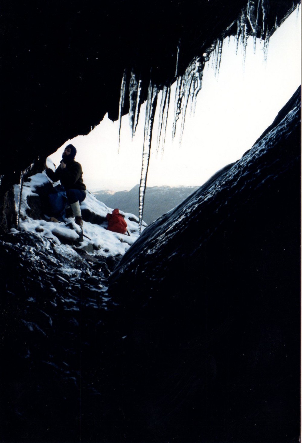 Icy conditions in a stope high above the mill building.