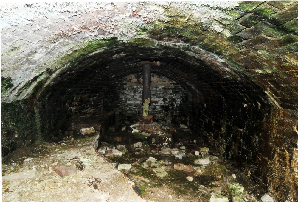 The interior remains of one of the two Brunton Calciners at DGC 3/5/2009. Arsenic crystals can be seen on the roof surface.