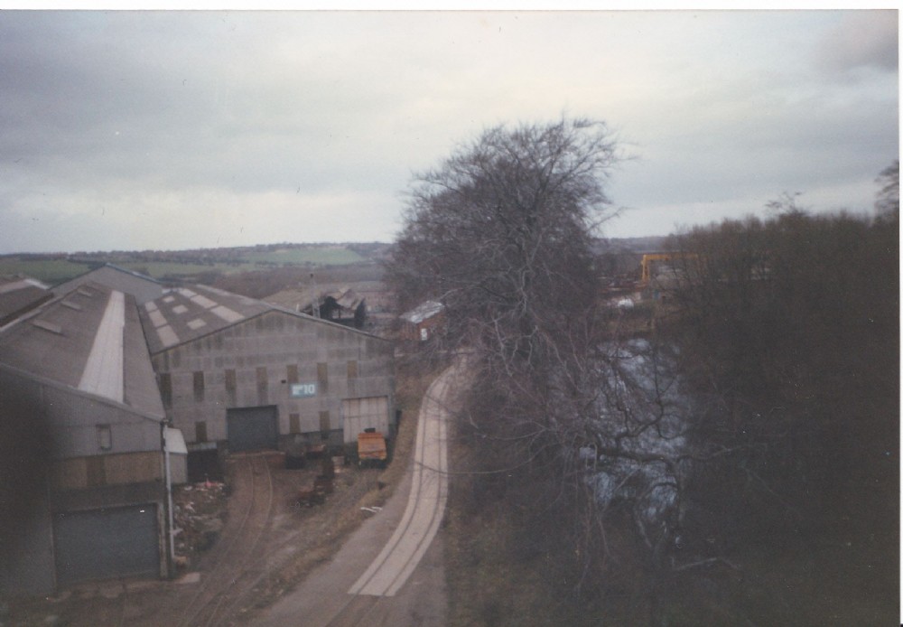 Butterley Works from A610 bridge - March 1990 showing partly demolished foundry buildings in background