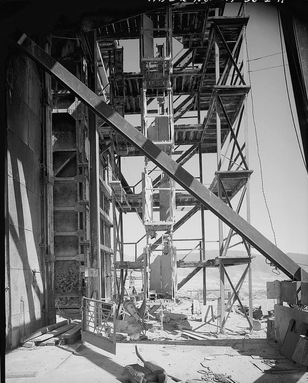 DETAIL OF THE CAGES SUSPENDED BENEATH THE BADGER STATE HEADFRAME.