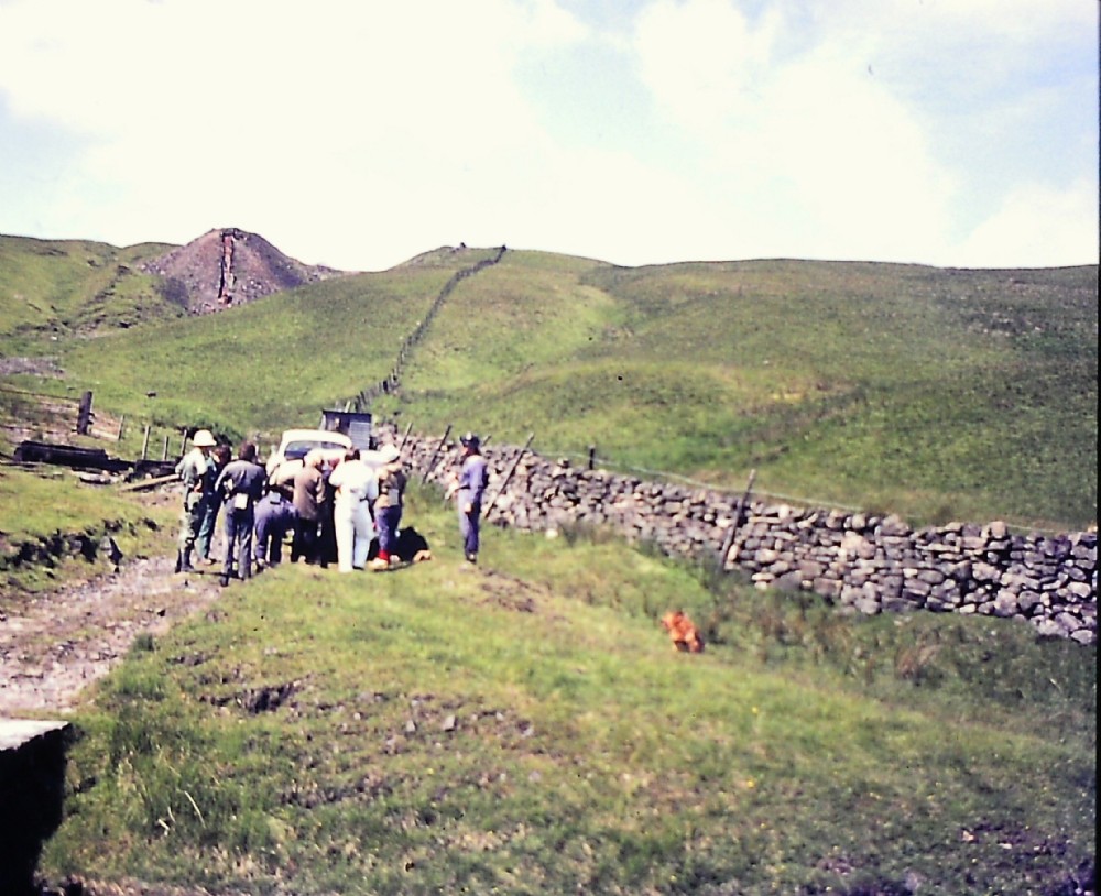 Group of NCMRS/PDMHS backs, possibly MS in the white boilersuit, HGM (probably) with the red socks, perhaps CMcC on the right, maybe Jake the Lab on far right.