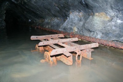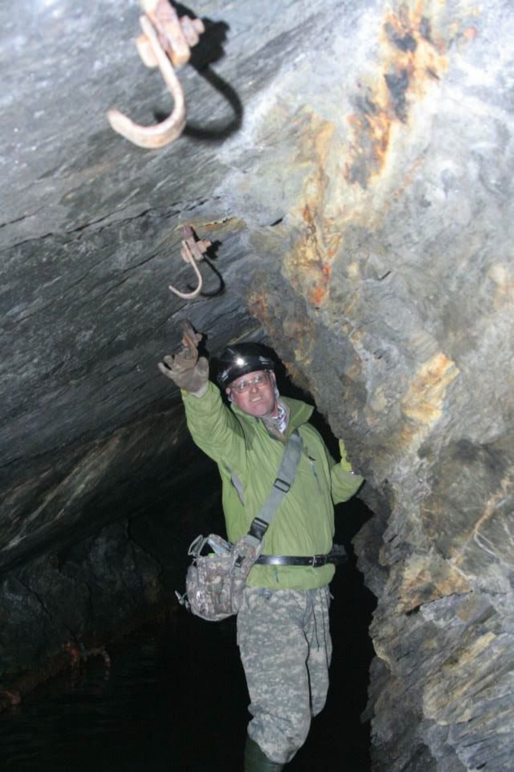 Explorer attempts to grab onto a hook to stop themselves falling into the water.