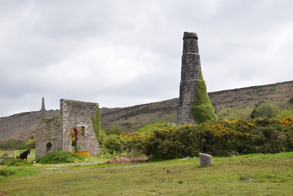 Old Stamps Engine House and Stack. Shaft marker in forground 05-05-17