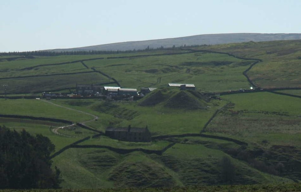 Craigs level tips (centre) with the workings of the old Barbary lead mine in the valley below.