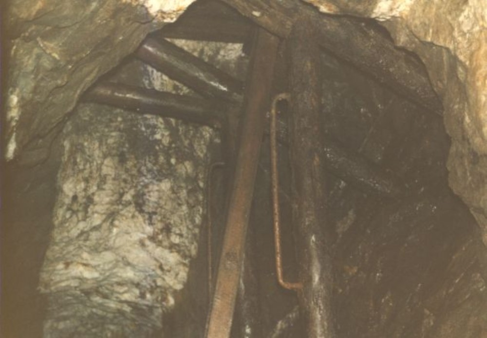 Bottom of the No. 1 raise from the No. 2 Level, Harding Vein