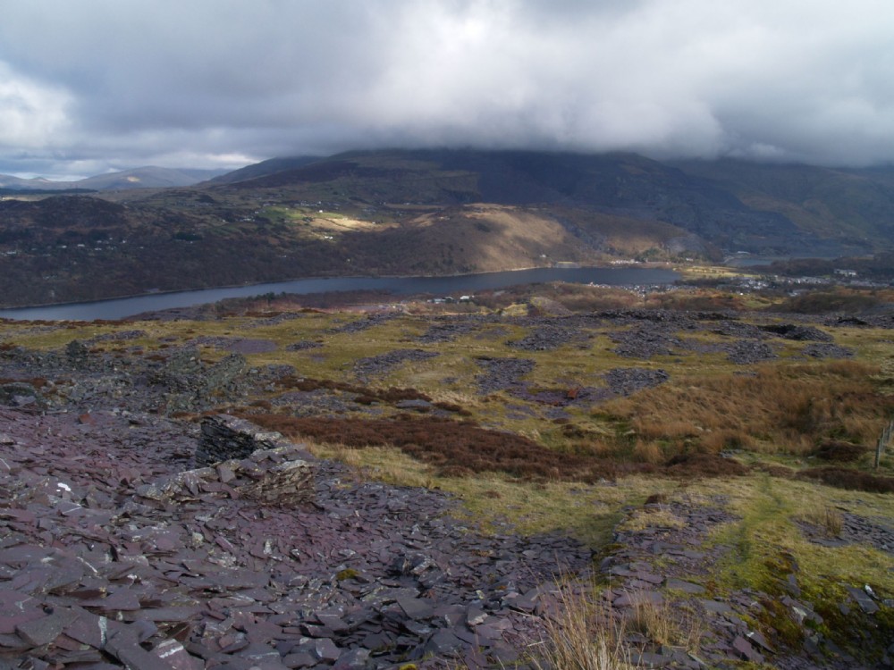 Landscape view looking over lower mills area towards Llanberis and Dinorwic.