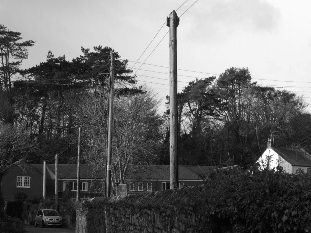 The line of post's and wire leading to the reservoir behind the houses. 04-11-09