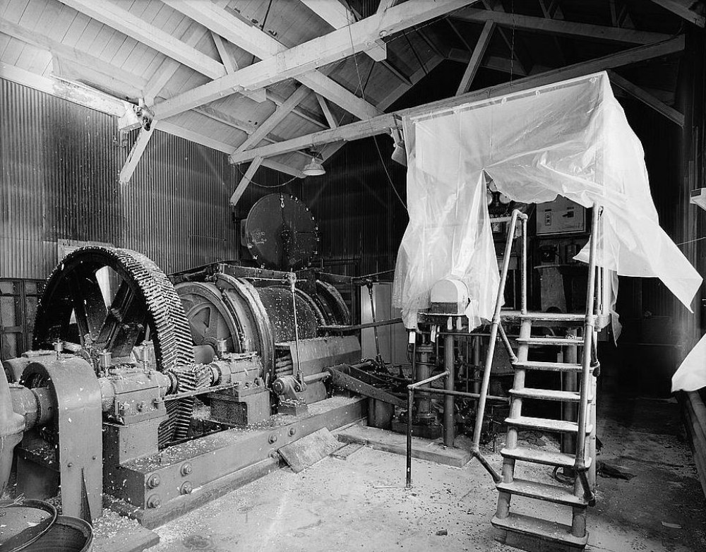 CHIPPY HOIST AT ANSELMO MINEYARD, LOOKING SOUTHWEST. THE HOIST IS A NORDBERG HOIST WITH A WESTINGHOUSE MOTOR.