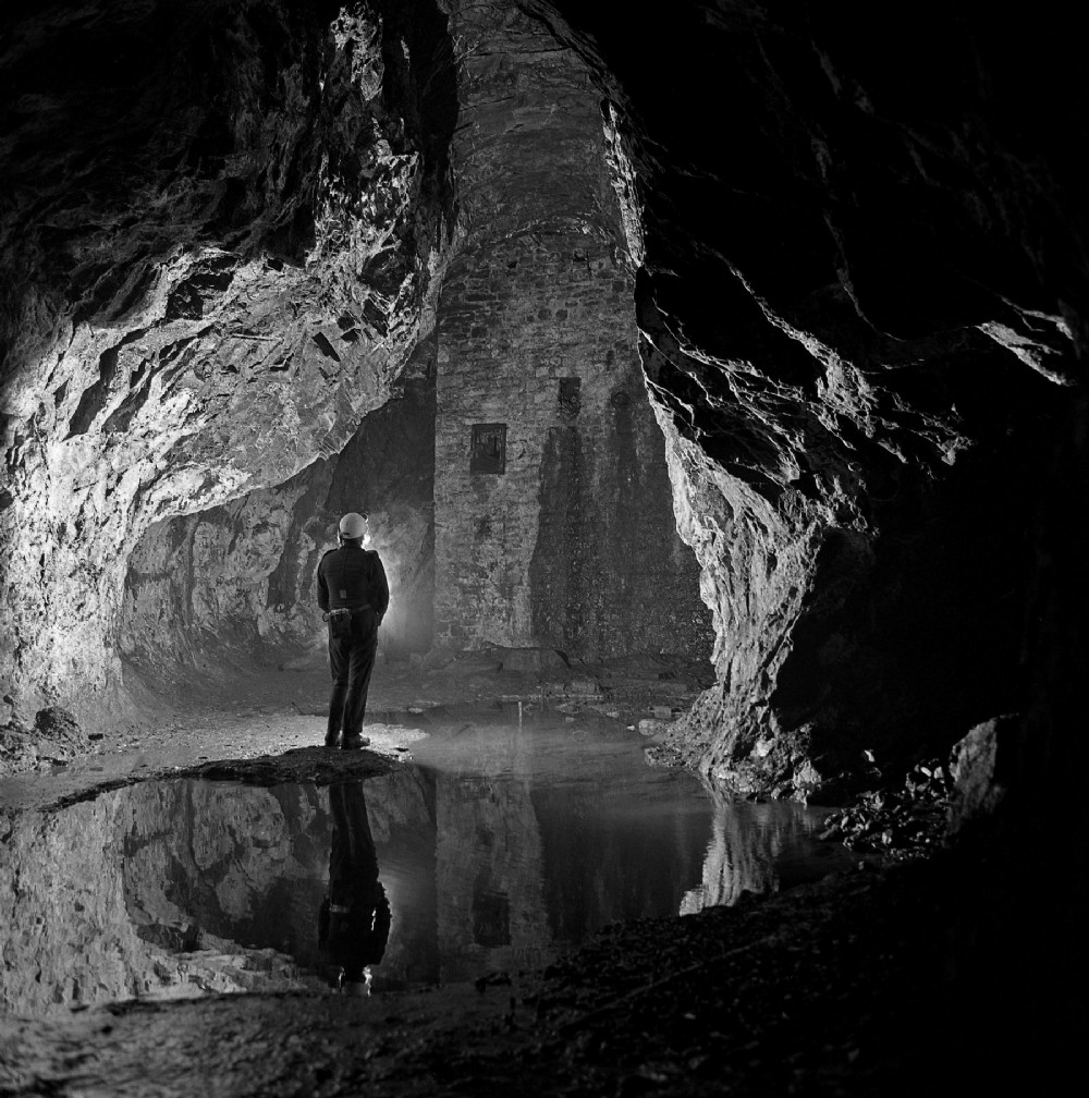 Despite appearances, the figure is not answering a call of nature! The 'steam' is, in fact, from the shellac-type coating on the old PF60 flash bulbs. The 960+ feet deep engine shaft here is behind the figure