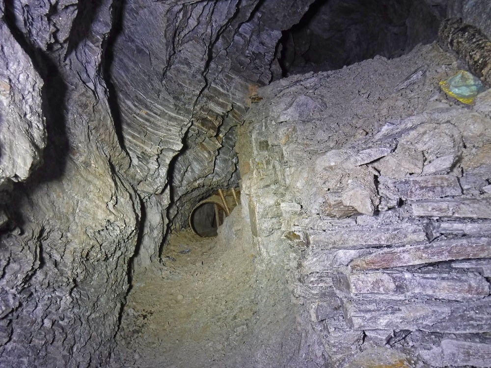 This was originally dug through in the 1970s by Simon Hughes and an oil drum fitted, but this had corroded over time. The level beyond shown in the photograph was a tight crawl under bad roof. This was cleared in 2018 by RF and the bad roof supported by concrete.