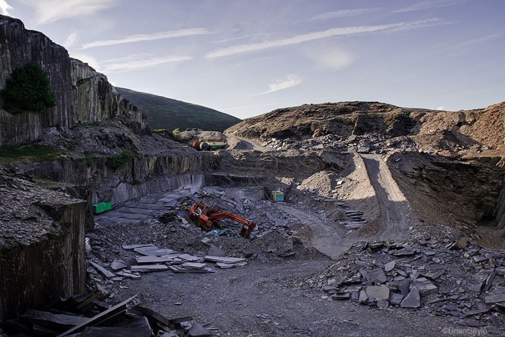 Burnt out digger in the pit.