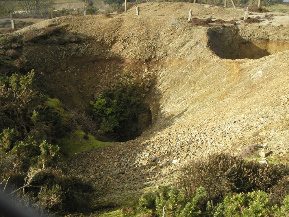 Closer look at close proximity of two shafts to each other. Left hand one shows evidence of substantial footings (Engine House?). One shaft was probably used for pumping and one for winding.