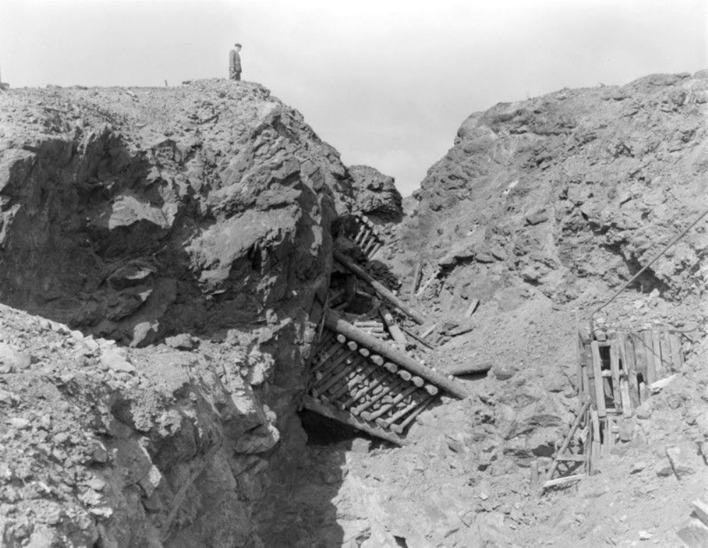 Clothister Magnetite Mine, Sullom, Shetland Isles. The open workings at top of the hill. 1061
