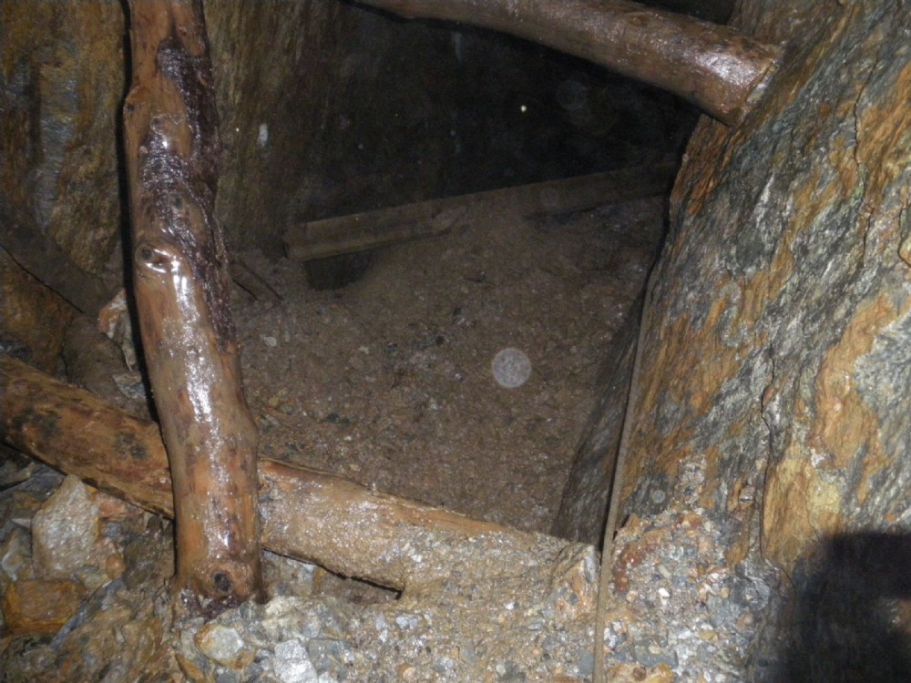 This collapse (pic looking down) covers part of the adit level. Where the picture goes dark there is an internal wince which as until recently covered by the rest of the collapse. The wince is some 60 fathoms deep filled to within 4 metres of the adit level
