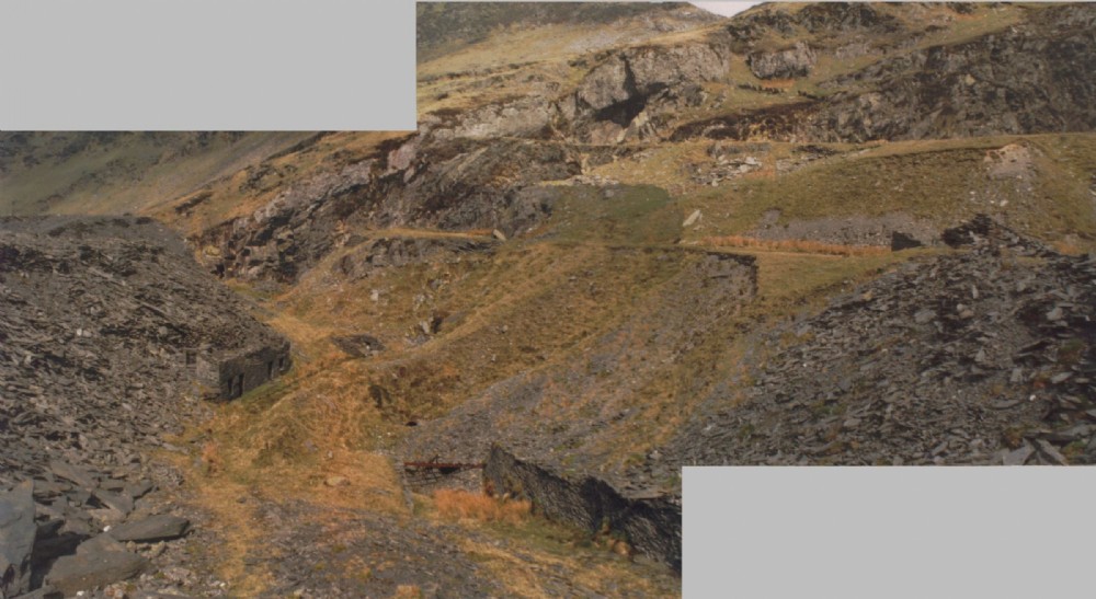 Shows the relationship of the Back Vein incline and the old floor 5 gravity incline down to the lake mill - the drumhouse ruins are to the right of the picture at the same level.