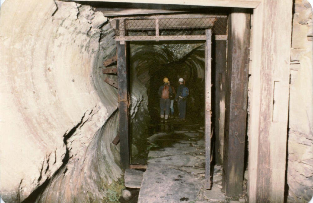 The mine doorway. In front of it thw level was driven either by a 4-cutter tunneller, or the 2-cutter tunneller twice. Beyond the door only the upper bores are present.