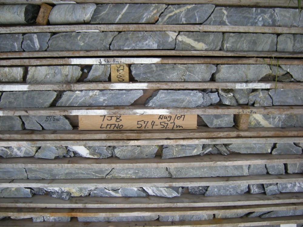 Close up of core samples from white rock area, dated aug 07. may 2008