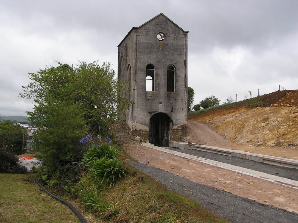 A view of the non-shaft end of the house showing the concrete runners or tracks along which the house was shunted during its relocation from the pump shaft to its final resting place above the town.