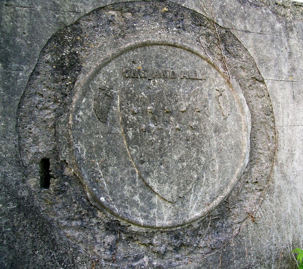 At the other end of the Frue Vanner House wall to the 1901 plaque is the remains of a very weathered Cornish Shield with the usual 'dots', plus 2 leaves and the phrase ONE AND ALL - no sign of a chough!