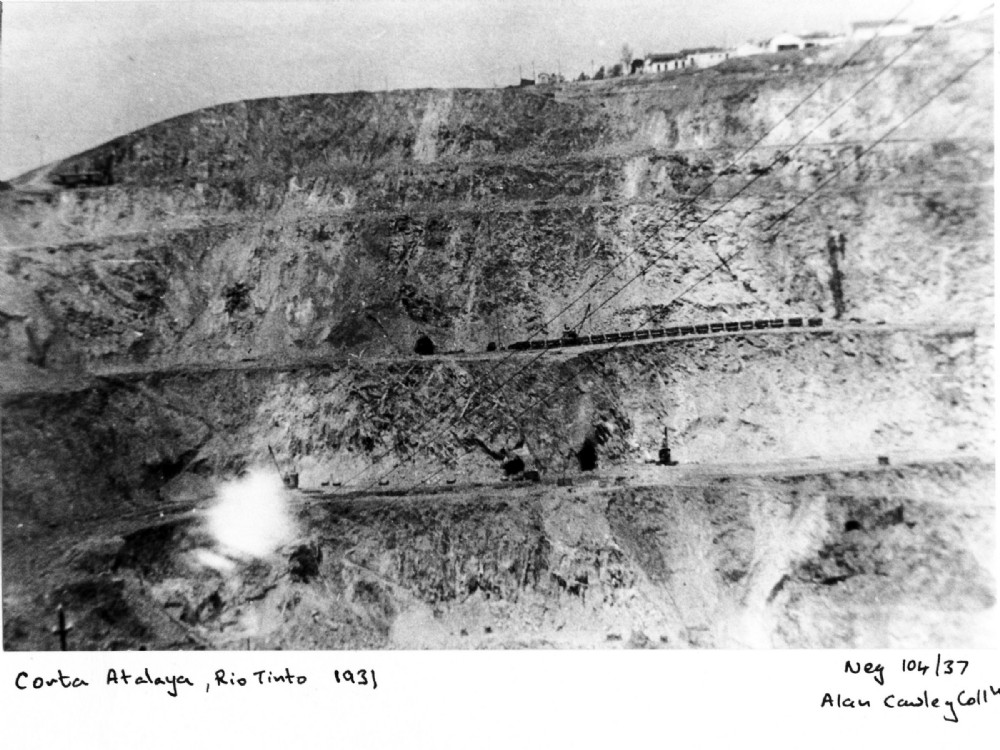 This is one of a number of photographs of Rio Tinto Mines, Tharsis Mines and other mining areas of Huelva, Spain, taken by Alan Cawley in 1931. Alan Cawley was a mining studuent at the Royal School of Mines, London between 1928 and 1932. He visited southern Spain in 1931 - presumably as part of his 'work experience'. His photos passed to Lynn Willies at the time of the expeditions in the early 1980s to examine Roman Mining at Rio Tinto, and have now been digitized by Dave Williams, Hon. Recorder, PDMHS.