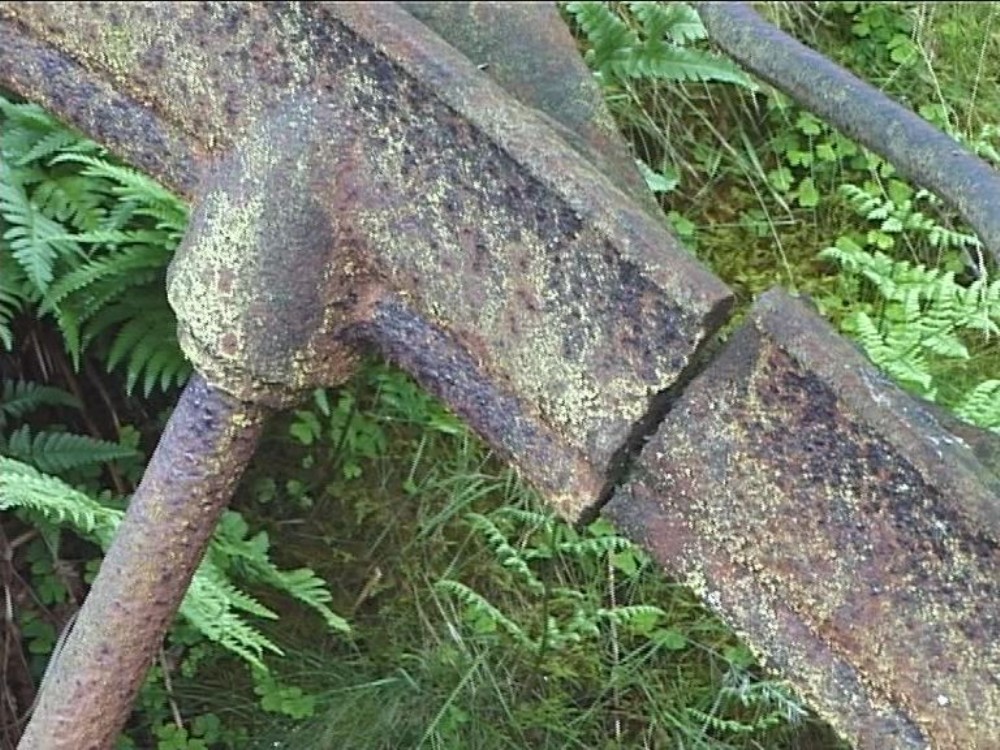 Detail of the crack in the sheave wheel at the water powered winding ('drawing') site over Engine shaft. [Grab from 12th July 2002 video]
