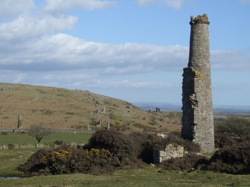 Edmounds Shaft stack. West Caradon stack on the left South Caradon in the background 29-03-09