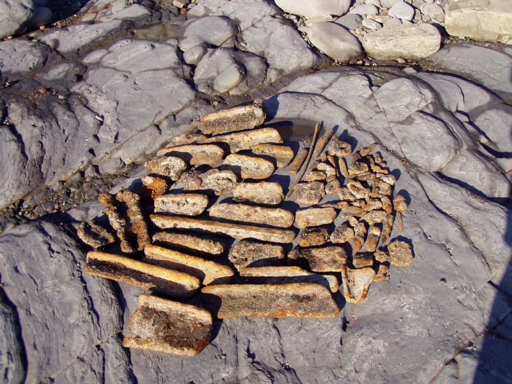 This is a couple of hours searching the base of the cliffs at Crickdam and all found without my metal detector. What you see here is fragments of plateway of different types, parts of the cast iron sleepers and other bits of wrought iron, all associated with the mining at Crickdam.