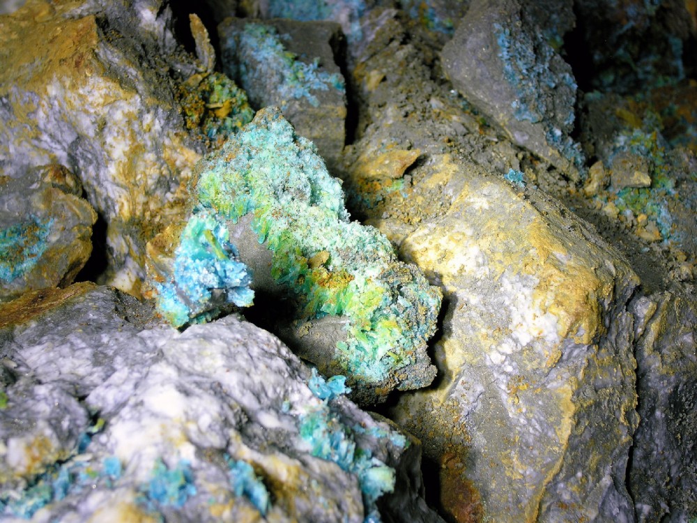Crystal formations of xx on the xx fathom level at Parys Mountain Copper Mine.