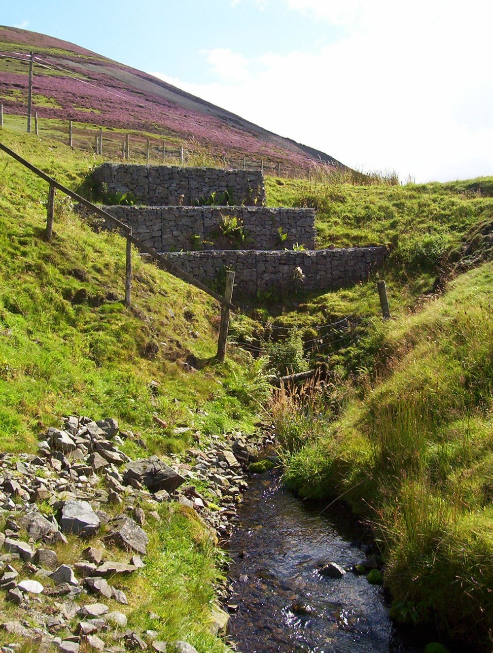 The water seen draining out here is not just the mine drainage, but also the Wanlock Burn which sinks down into the Straitsteps Vein workings (just in front of the visitor mine entrance) and works it's way through to the Bay mine workings (which actually connect with the workings on the Lochnell Vein - the visitor mine) and emerges here. The river bed in the upper part of the valley is dry except in wet weather!