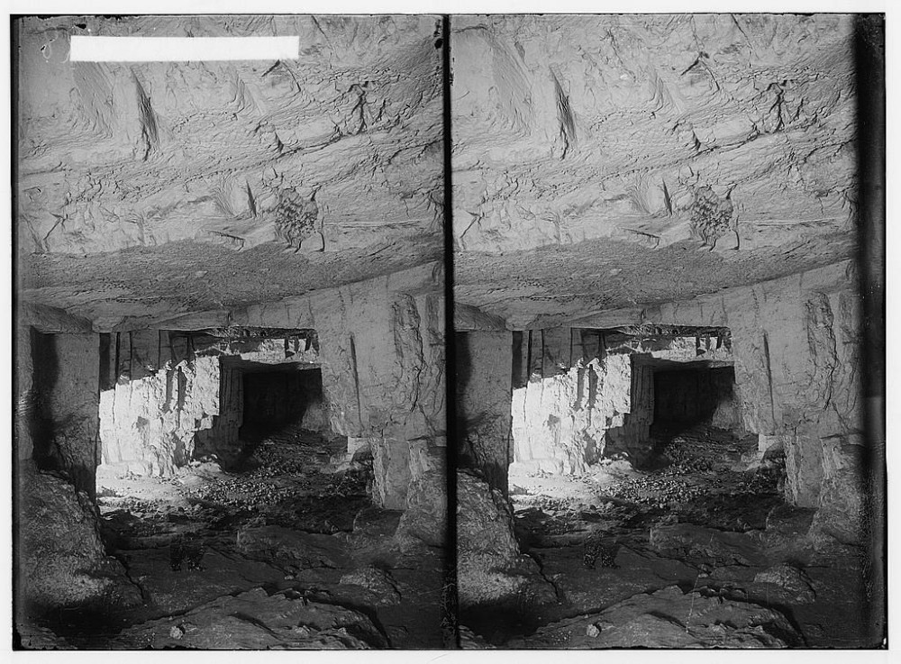 Damascus Gate and environs. Solomon's Quarries, showing mode of ancient quarrying 1900-1920