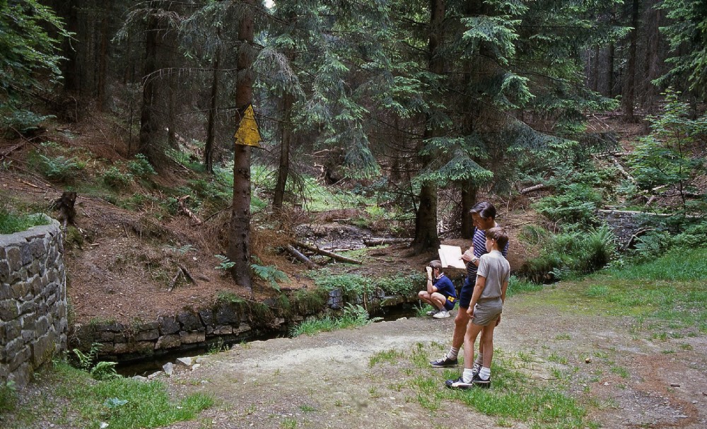 All over the mining area are yellow notice boards giving a potted history for the location. The leat here pops out of the tunnel on the left and vanishes again into a tunnel on the right!