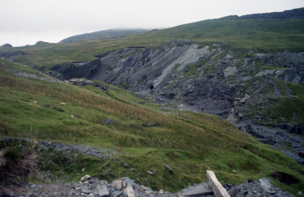 One of a sequence of shots from just beside the Rhiwbach incline looking roughly southwards. The level visible in the open quarry led to the so-called "Mill Floor" underground level round the back of the open quarry via the old "Mill Floor Incline" and connecetd with the short level between the mills and the main Back Vein Incline.